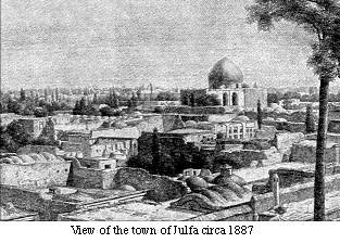 The most memorable church in Julfa, the one that comes to mind upon mentioning the name of the city, is the Amenaperkich or the Church of the Saviour. Also referred to as Vank, the church was constructed between 1655 and 1664--during the reign of Shah Abbas II--by funds contributed by the Armenian population of Julfa. The exterior of Vank Church recalls the brick architecture of the Jami' Mosque built by the Saljuqs across the river; the interior is adorned by paintings heavily influenced by Italian artists. The amount of gold used by Iranian artists in the interior decoration of this church surpasses the gold used in all the other churches combined. | ![]() |