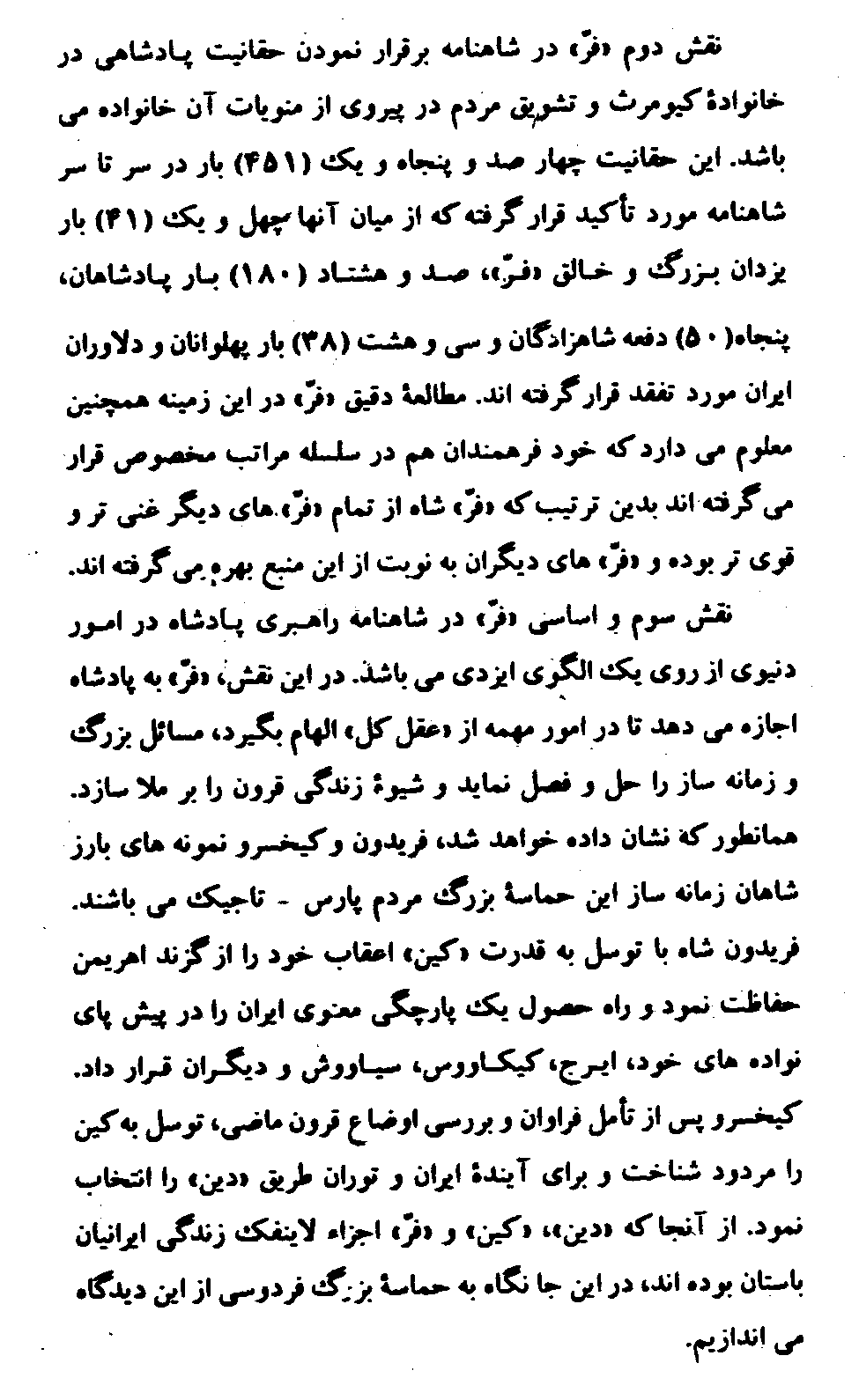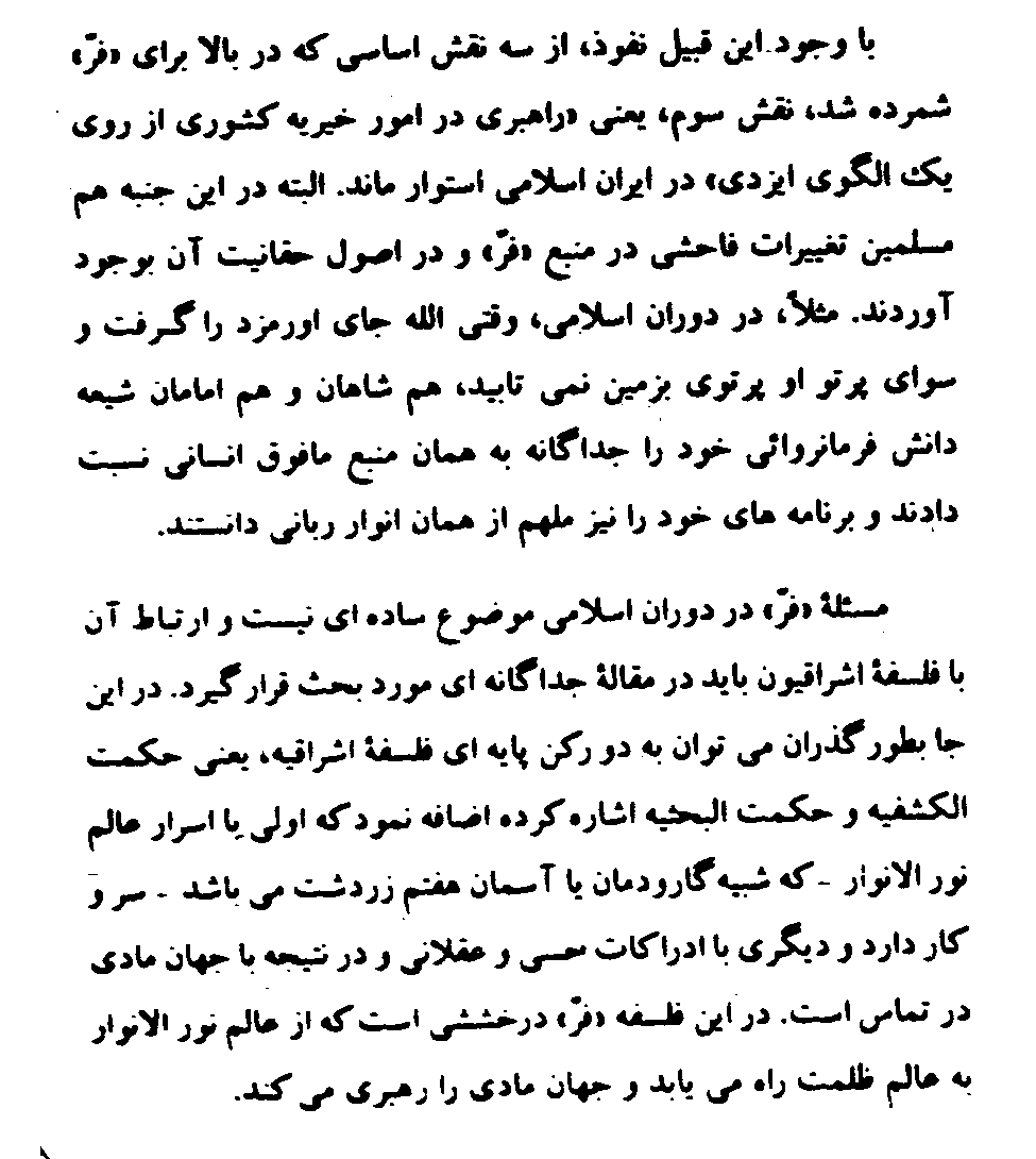 This article, "Naqsh-e Farr Dar Shahname-ye Firdowsi," was originally published in the journal Paivand, Vol. 3, No. 12, December, 1993, Dushanbe, Tajikistan, p. 6. See also "The Role of Farr in Firdowsi's Shahname."