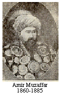 Amir Muzaffar was born in 1824 or 1825. At the time of Amir Nasrullah's death, he was the governor of Karminah. The major event during the time of Amir Muzaffar was Russia's advance into Central Asia.