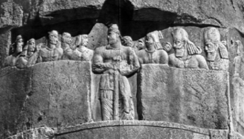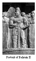 Among the more family-oriented friezes (cf., Darius I's reception of a messenger in which crown price Xerxes I appears) is a family portrait ordered by Bahram II to be carved out of stone in the tradition of the Achaemenians at Naqsh-i Rustam. The frieze depicts Bahram II, his queen, his crown prince, and his other family members.