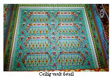 Engaged with surface designs, the guests do not really get a chance to see the very thing that makes the Boulder-Dushanbe Teahouse or, indeed, any Tajik teahouse, a unique structure, the ceiling. Unlike conventional ceilings, the ceiling of the teahouse is not flat and is not accentuated with expensive chandeliers. Rather, it is comprised of a series of vaults, each decorated differently but all using tiles in bright red, green, and blue colors and geometric and floral designs. Lighting for the ceiling is mostly produced by apertures that allow natural light into the structure.
