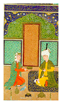 As for Nu'man himself, having seen to the construction of the most beautiful castle in the middle of a meadow surrounded by roses and tulips, one day he wanders into the desert and, like the legendary Kaykhusrau, disappears into thin air. After many days and nights of mourning, Manzar, Nu'man's son, ascends the throne of Yemen. Bahram and Manzar's son, also called Nu'man, grow up together in the beautiful Khwarnaq castle. Together they learn Arabic, Persian, and Greek as well astrology and philosophy. They are trained in the art of war, the manners of kings, and the intricacies of the hunt.