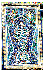 In building the Boulder-Dushanbe Teahouse, Khujandi architects have synthesized the prominent elements of Dushanbe teahouses into one delightfully unique structure. Here, the ornate patio and colonnades of the teahouses are summarized into a wooden patio, one that can better weather the Colorado climate. The wooden patio then, as time permits, is decorated with plants and flowers to produce the color and attraction of the blue tiles of the original. Similarly, the large, ornate tile tapestries of Rohat and Faroghat are divided among a number of beautifully executed tile motifs to accommodate windows, a necessity for Boulder that Dushanbe can do without. In fact, Dushanbe teahouses are open spaces, in spite of the threat of rain, sun, and other elements to their delicate art work. Sa'odat teahouse has a beautiful fountain in front and a nice pool of clear water inside.