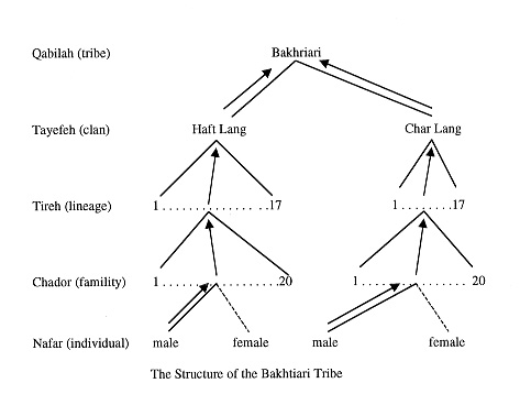A number of tirehs form a tayefeh. The affairs of the tayefeh are regulated by a Kalantar or chief who is appointed by the Il-Khan or chief of all tribes. The Kalantar oversees the well-being of the various tayefehs as well as settles disputes among the members of the tirehs. He also takes care of the problems that had not found a solution at the chador and the tireh levels. |
