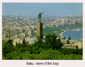 The fifth largest city in the former Soviet Union, after Moscow, Leningrad, Kiev, and Tashkent, Baku is a city with a very busy harbor, an immensely long sea front, and a picturesque promenade. To offset the industrial atmosphere that an oil town might present, each Baku resident is required to plant a tree every year. At the present, the population of Baku is over two millions. As an indicator of the rate of population growth in the city, consider the following:
