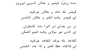 Even without the Arabic translation, a present-day Iranian understands this poem. "Abr," (the dot for /b/ is missing) is, of course, "cloud" as attested by "ghaim," "kamgharan" and "kamkaran." The problematic part is, perhaps, the introductory phrase that could mean "At the time of visiting the Caesar, Khaqan, King of Kings Parviz. It is not a part of the poem because, unlike the hemstitches of the poem, it does not have an original form.