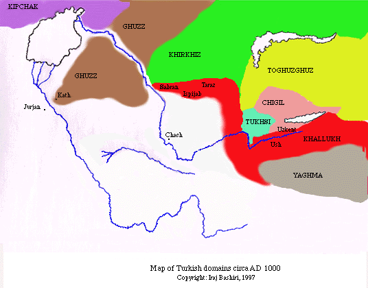 Historical sources, consisting of the reports of the anonymous author of the Hudud al-Alim, the works of Ibn Hawqal and Abu Dulaf, as well as the analyses of Minorsky and Le Strange establish the boundary between the Turks and the Muslim inhabitants of the region at the following points: