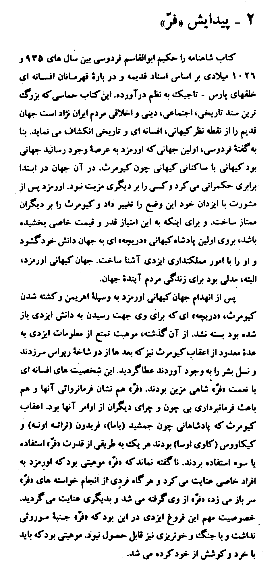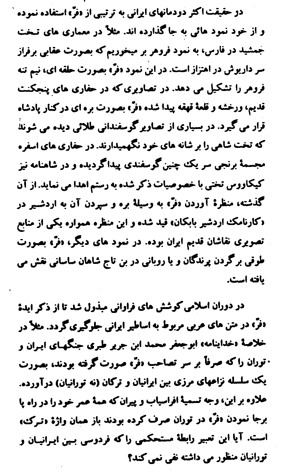 This article, "Naqsh-e Farr Dar Shahname-ye Firdowsi," was originally published in the journal Paivand, Vol. 3, No. 12, December, 1993, Dushanbe, Tajikistan, p. 6. See also "The Role of Farr in Firdowsi's Shahname."