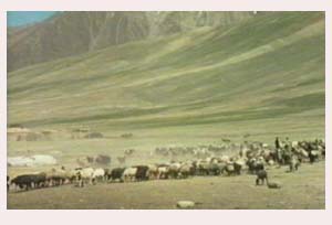The economic system that Rahmanqul used is called Amanat. According to the Amanat system, any member of the tribe could "borrow" a number of Rahmanqul's sheep and use their milk and wool, and dung (for fuel). The sheep themselves, and their offspring, however, remained the property of Rahmanqul. At the end of each year, therefore, the person who had borrowed a small herd was required to contribute a certain number of lambs and sheep to Rahmanqul's flock, making his holdings even greater. Rahmanqul then would send the surplus--sometimes over 1,500 sheep--to Kabul for sale. The money gained from the sale of the sheep was used to buy rice, sugar, tea, and utensils. |