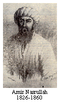 In general, Amir Nasrullah was not much liked by his countrymen. They characterized him as a "cruel and bloodthirsty Amir who took nothing and no one into account."38 Neither was he a perceptive ruler who was aware of the political dynamics of his region or, for that matter, of the world of his time. For instance, during Amir Nasrullah's rule, a growing rivalry emerged between the two superpowers of the time, Britain and Russia, in Central Asia. After crossing the Orenburg border, the Russians sent ambassadors to Nasrullah's court to foster political relations. Similarly the British, having entered Afghanistan with the intention of blocking Russia's movement in the direction of India, sent ambassadors to Nasrullah's court to foster political relations. Rather than using this golden opportunity to promote the region as a whole, Nasrullah engaged his neighbors in petty squabbles. As for the ambassadors, he either killed them or held them hostage.39 Only towards the end of his rule, i.e., 1857, did he send an embassy to Russia to assess the military might of the country, as well as to examine the possibility of establishing commercial relations. But even that embassy failed to either establish relations with Russia or, at least, provide a realistic measure of the military might of the Russian Empire. Amir Nasrullah died in 1860. He was succeeded by his son, Muzaffar.