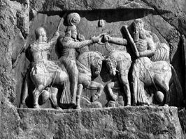 By the time of Shapur I, Artabanus V is no longer recalled. New vanquished enemies must be humbled before the king. In this context, Shapur I forces Valerian, the Roman Emperor whom he had defeated, to keel before him every time that he wishes to mount his horse. In some instances, it is related that he used the Roman Emperor as a step to mount.