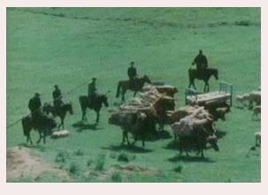 The introduction of Communism into Xinjiang province changed, to a great degree, that way of life. Individual ownership gave way to collective ownership and state supervision. Thus, families were no longer part of a tribe but members of a commune. Within the commune, younger members had the right to make decisions on the fate of the older members, a situation that could never materialize in a tribal structure. Additionally, they had to hide their nobility and wealth in order to conform to the norms. Teams of more than one-hundred families were formed to tackle difficult tasks. For larger endeavors, like branding of large herds of yak, four teams were put together to form a brigade. The brigade then was given an organization that could respond to all the needs of the two thousand or so families that lived within it. Finally, for the brigades to fall into the overall Chinese administrative structure, they were combined into larger entities. Three brigades, for instance, formed a commune. |