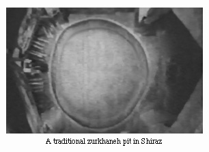 | The zurkhaneh has a little known but fascinating history. During the fall of the Persian Empire to the armies of Islam, Iranian athletes and warriors alike, lost their ability to perform their traditional sports in the open. Neither did they want to abandon their cherished traditions which were fundamental for keeping their minds and bodies sound and healthy. Consequently, Iranian athletes decided to gather in private homes and carry on their normal routine there. Later on they moved into the type of covered structure that we recognize now as the zurkhaneh. | ![]() |